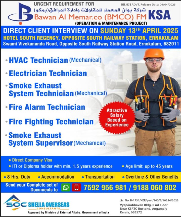 front-overseas#ksa #hvactechnician #electriciantechnician #smokeexhaustsystemtechnician #firefightingtechnician #smokeexhaustsystemsupervisor By PREM LAL / April 8, 2025